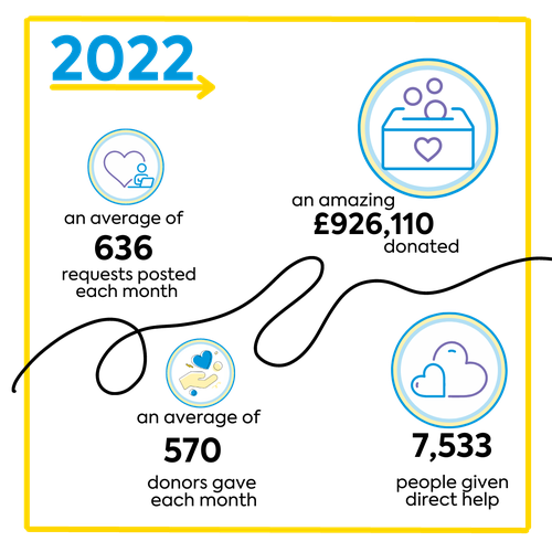 We have the vision to be helping over 1,000 people a month by 2025 - through a network of 1,000 partners. In December 2022 that goal felt achievable once more and we look forward to the year ahead and opportunities to reach new partners and new donors so that even more people can receive the urgent support they need.