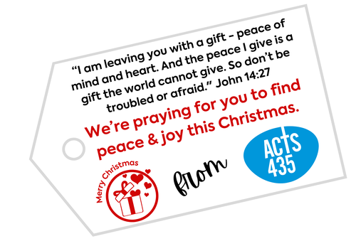 We hope that many of our local Advocates will be able to share the Good News of Jesus, and the Christmas story, as they support individuals with Acts 435 requests this Christmas. To enable them to do this we have created a simple gift tag that they can attach to items, or share electronically with recipients.