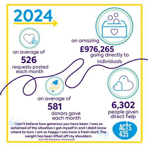 2024 got off to a cracking start after Songs of Praise featured us in their 2023 Christmas series - and that kept requests moving so quickly from our website. By May the average was still under a week, and only creeping up to 8 days in June, July and August. That compares to 14, 11 and 11 days the previous summer. We ran another successful fresh starts campaign in Easter (helping 92 individuals with £14,925), school uniform appeal in the summer (helping 72 families with £11,075) and topped the year off with an incredible Christmas campaign, receiving nearly £130,000 in donations through the month and clearing our website of all live requests just before the end of the year.